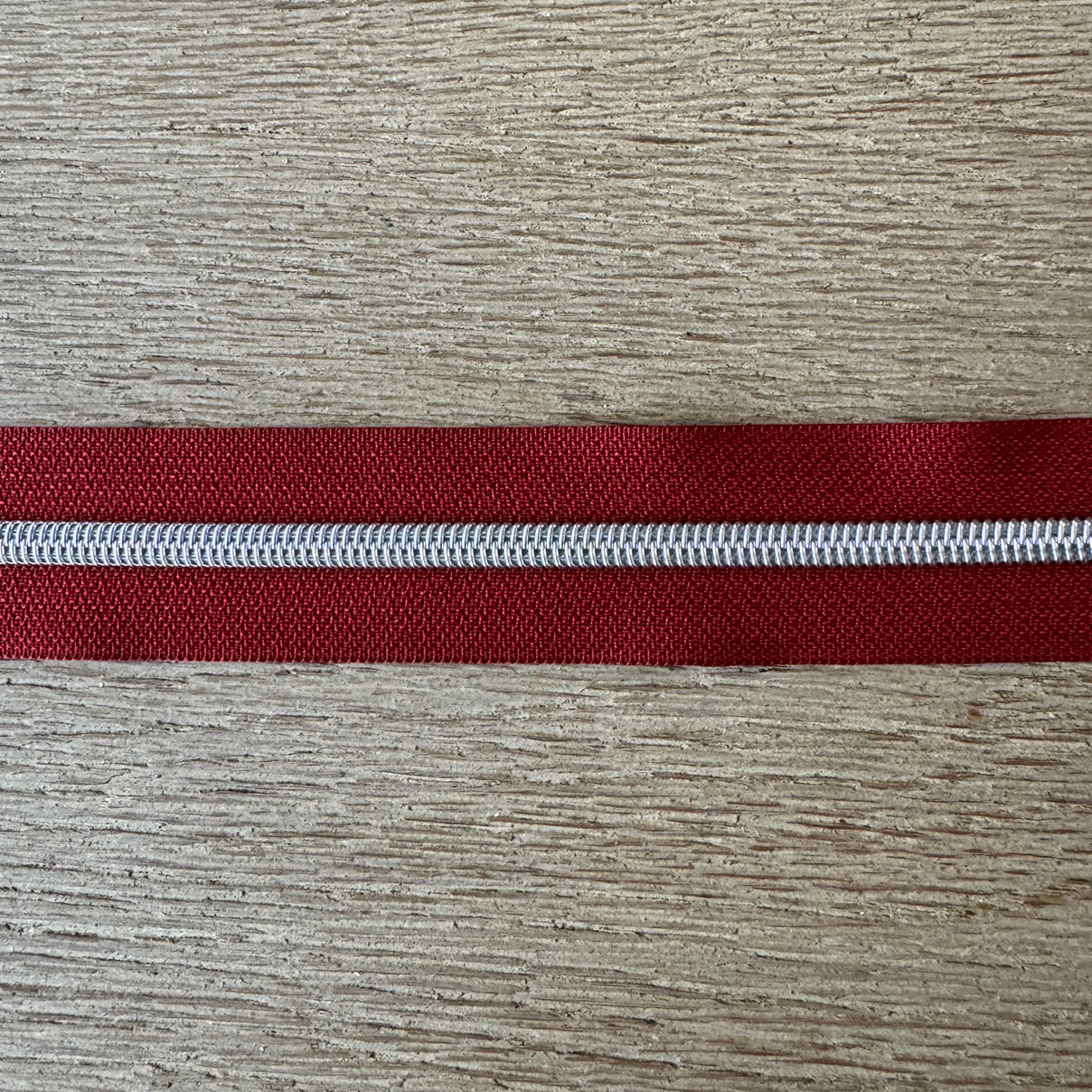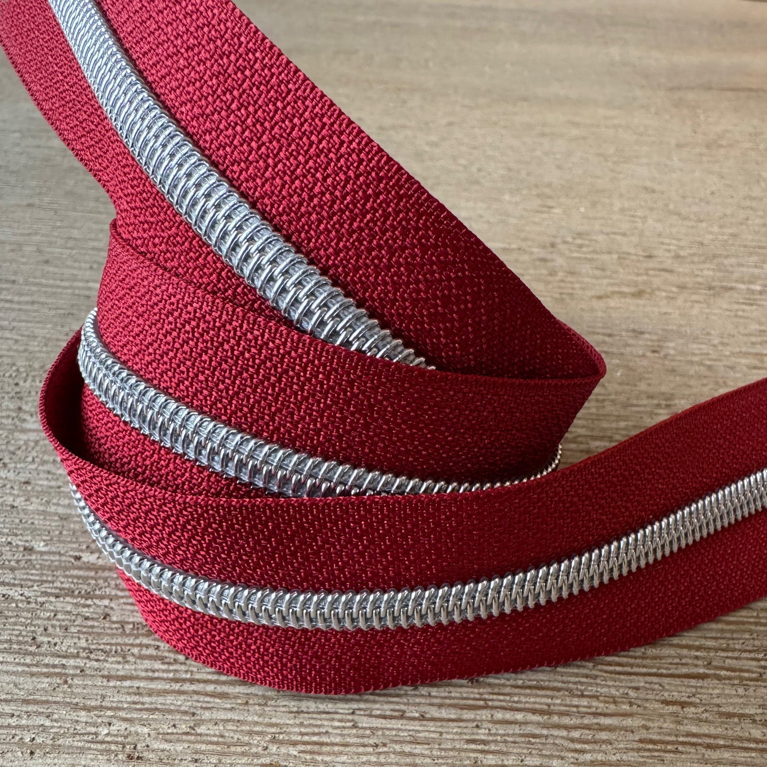 #5 Nylon Red Zipper Tape with Silver Teeth